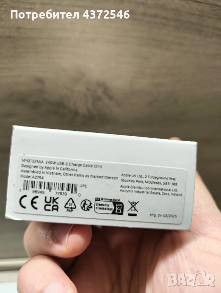 Оригинален кабел за зареждане apple 2 метра → Обява 52204156