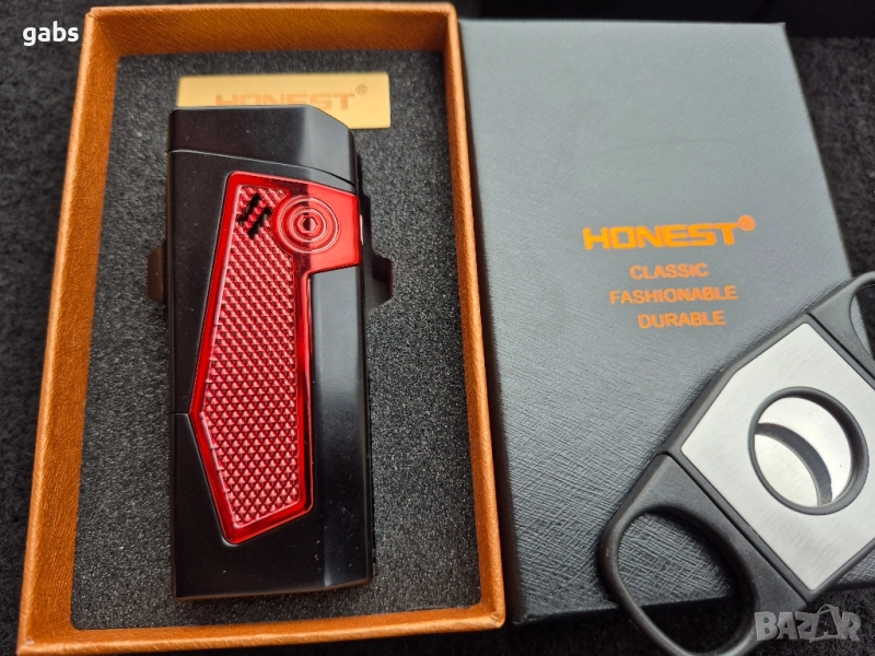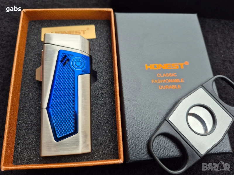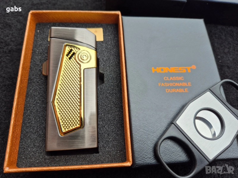Луксозна запалка за пури HONEST с подарък резачка,три цвята