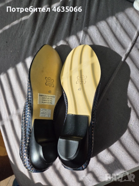 Испански дамски обувки в синьо златен цвят. Удобни и стилни, подходящи за различни поводи през цялата година. Плетени 41 номер
