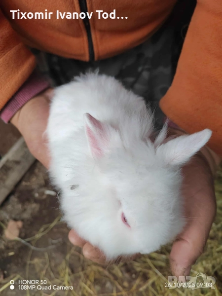 Декоративни бели зайчета на 2 месеца много симпатични с къси ушички