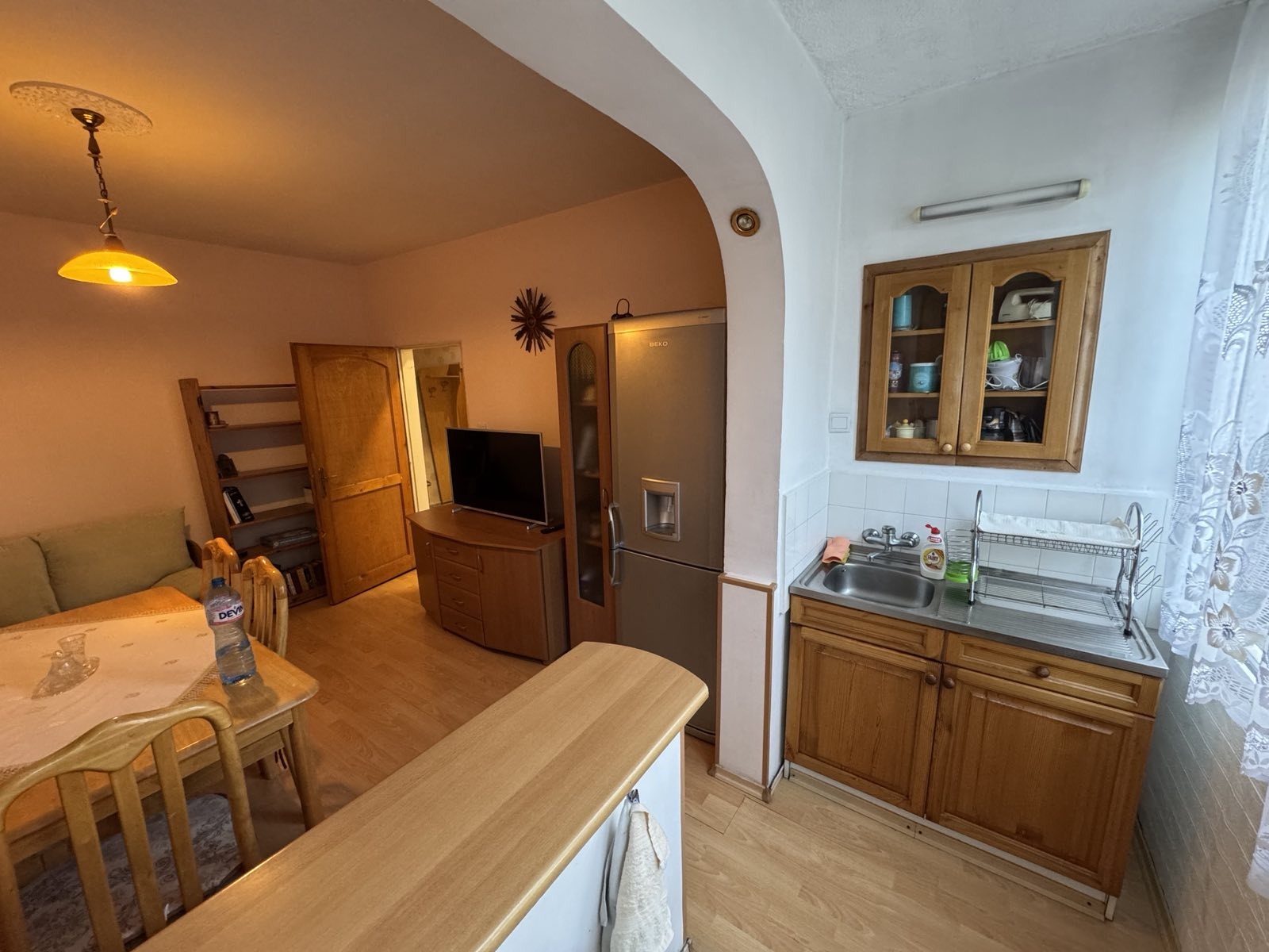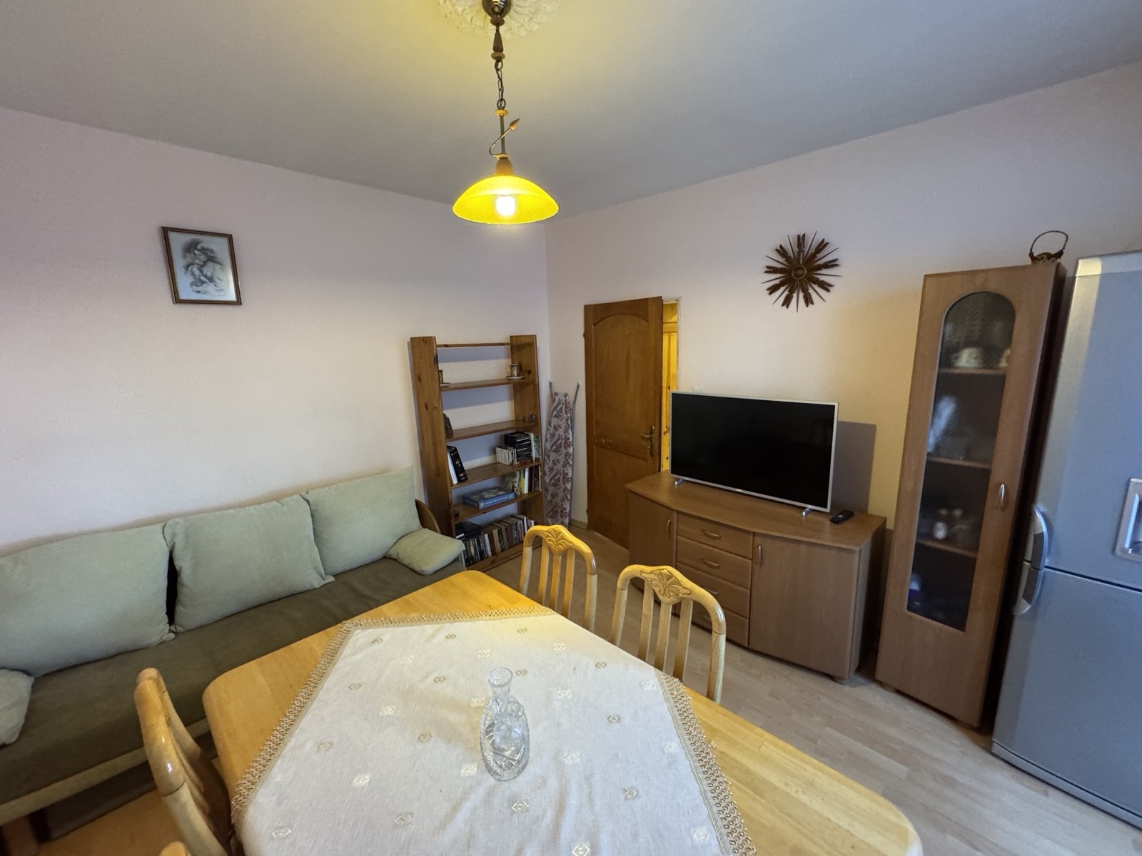Двустаен апартамент преустроен в тристаен в бл. 813, с разпределение: коридор, дневна с трапезария и кухненски бокс, две самостоятелни стаи - eдната от които е двойна - с балкон пред нея. Хубава баня с тоалетна, на фаянс и теракота. Апартамента е в много добро състояние и се продава обзаведен с обзавеждането видно на снимките в рекламата. PVC дограма, кухненски шкафове с електроуреди. Чист и поддържан вход с контролиран достъп, видео наблюдение, работещ асансьор и добри съседи. Голямо междублоково пространство зад блока с градинка и детска площадка и свободно паркиране пред блока. Разполага с Мазе. Ремонтиран покрив през 2025 година. Саниран. Перфектна локация: на около 3-4 мин. пеша от метростанция Люлин, в непосредсвена близост до 56 СОУ, на 3-4 мин. пеша от ОДЗ 73, в непосредствена близост: денонощна аптека, Била, Технополис, КFC, Deichmann, бензиностанция, а Мол Люлин е на една спирка с метрото. Апартамента е свободен и с изрядни документи за сделка, а състоянието в което се намира позволява да се ползва или да се отдаде под наем Веднага !!! Ключ в агенцията. Възможен е разумен коментар на цената !!!