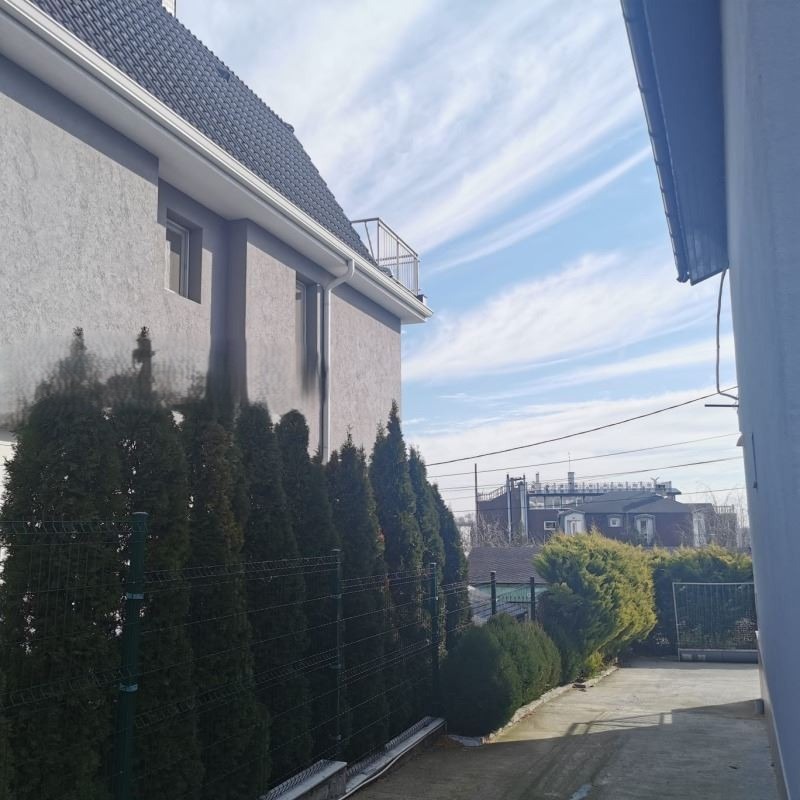 Дворът към къщата е с площ от 550 кв.м. с възможност за паркиране на 4 автомобила. Къщата е свързана с централна канализация, собствен водоизточник/сондаж.