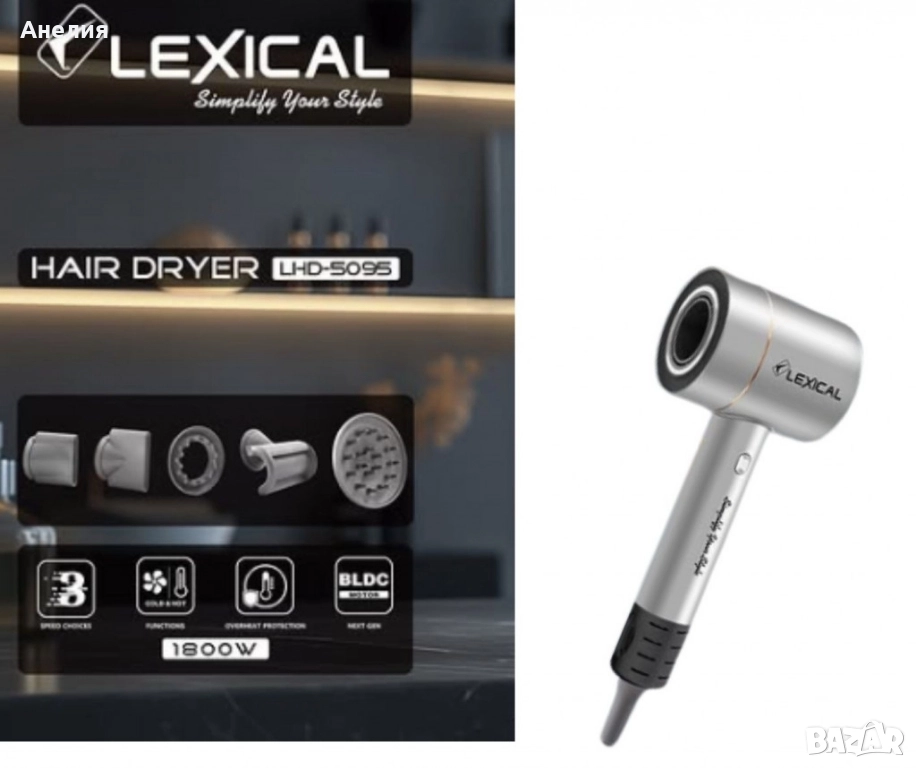 Тип продукт: Сешоар за коса; Сешоар Lexical LHD-5095 Turbo Force е мощен и иновативен уред, който осигурява ефективно сушене и стилизиране на косата. Мощност: 1800W за бързо сушене. Мотор: BLDC мотор, който осигурява дълготрайна издръжливост и висока ефективност. Напрежение: 220-240V, 50-60Hz. Негативни йони: Функция за кондициониране с негативни йони, която намалява електростатичното натрупване и прави косата по-гладка и блестяща. Регулиране на скоростта: 3 нива на скорост и 3 нива на температура. Въртяща се скорост: Моторът достига до 100,000 об/мин, което осигурява бързо и ефективно сушене. Магнитен въздушен накрайник. Функция за студен въздух. Защита от прегряване: Предотвратява повреда на мотора и увеличава безопасността при употреба. Гаранция: 24месеца.