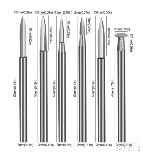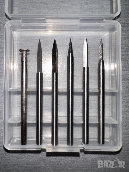 5бр + 1бр за заточване фрези за прецизна дърворезба, идеални както за обикновена така и за микро резба