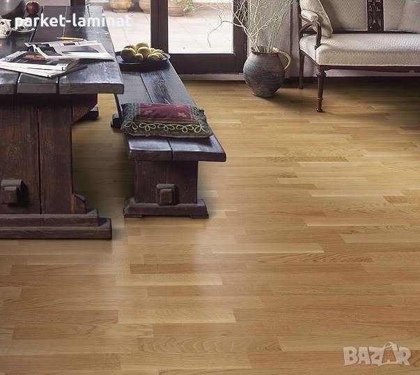 Великолепен класически трислоен паркет от Tarkett - перфектен за всеки под и вкус! Категория Europarquet, колекция Sommer, произведен в Сърбия. Трислойният паркет Original Oak, № 550233002 е вечният декор, който гордо отстоява във времето и на всеки дизайн. Красив, изчистен, естествен дървесен вид, носещ стил и класа на всеки под. Дебелината на дъската го прави чудесна изолация, а горният дъбов слой позволява циклене, след време. Разделен е на стандартни правоъгълни паркетини с типичният за дъба наситен рисунък. Удачен е за жилищни помещения с висока натовареност, както и за търговски и административни подове. Лакът е нанесен в заводски условя, което прави паркета готов за ползване веднага, след монтажа.