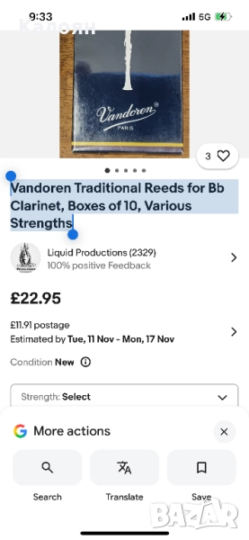 Традиционни Bb тръстики за кларинет Vandoren и други плюс части - лот → Обява 52207465