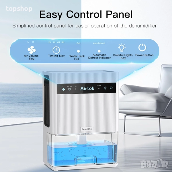 влагоуловител Airtok до 950 кв. фута, 105,6 унции, тих влагоабсорбатор за спалня с автоматично размразяване, 4 таймера, автоматично изключване, 7 цвята LED светлина, за баня, мазе, гардероб, кемпер