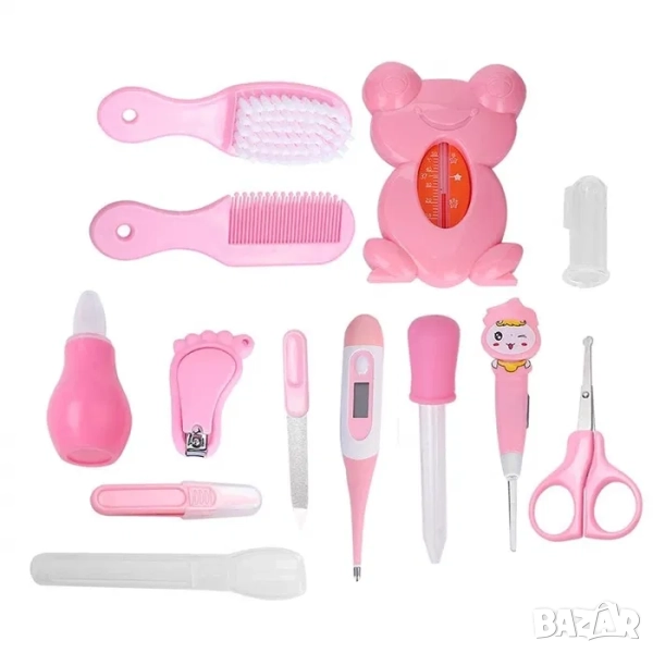 Комплект от важни аксесоари за бебешкия тоалет, който съдържа 13 части: