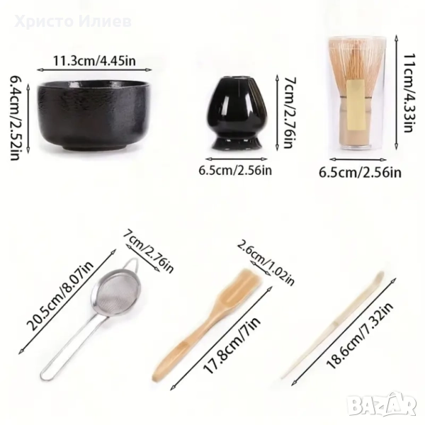 - Пълен комплект: Традиционният комплект за чай матча включва керамична купа, бамбукова бъркалка, държач за бъркалка, мерителна лъжичка и цедка за чай за автентично приготвяне