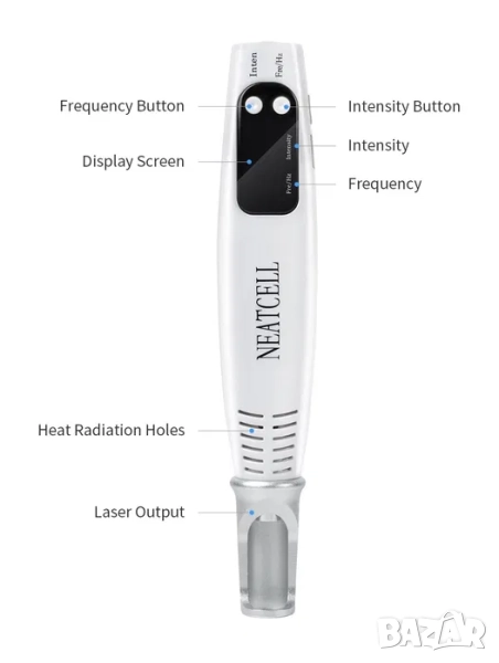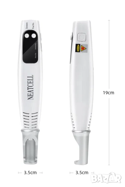 МИНИ ПИКОЛАЗЕР NEАTCELL ЗА ПРЕМАХВАНЕ НА ПЕТНА, БЕЛЕЗИ, ПЕРМАНЕНТЕН ГРИМ, ТАТУИРОВКИ NEАTCELL е портативен мини пиколазер, който отстранява белези, пигментни петна, перманентен грим. Използва се и за премахване на татуировки, лунички и брадавици. Лекият му и компактен дизайн го правят изключително лесен за употреба. Вие контролирате нивото на енергия и разстоянието от кожата. Лазерният лъч на писалката Picosecond, ефективно разделя меланина на фини частици, като намалява отлаганията му.