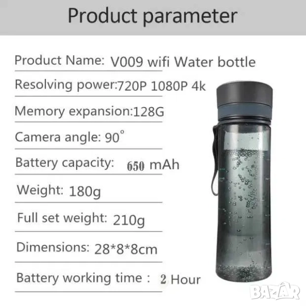 Най-новата 4К Full HD шпионска скрита камера в спортна бутилка за вода!