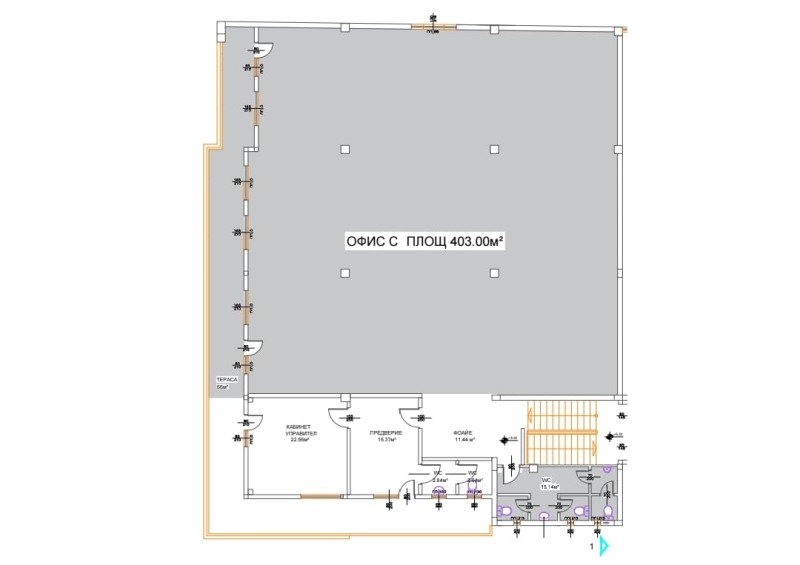 Представителен вход и удобства за служители и клиенти перфектно за образователни центрове, кол центрове, корпоративни офиси, йога студио.....