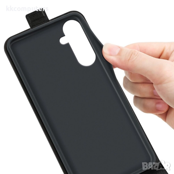 Този вертикален кожен калъф съчетава модерен дизайн с практически функции като магнитно затваряне, вграден холдер и удобен слот за карта, където можете да съхранявате банкова карта или лична карта, предлагайки пълна защита и комфорт във всеки един момент.