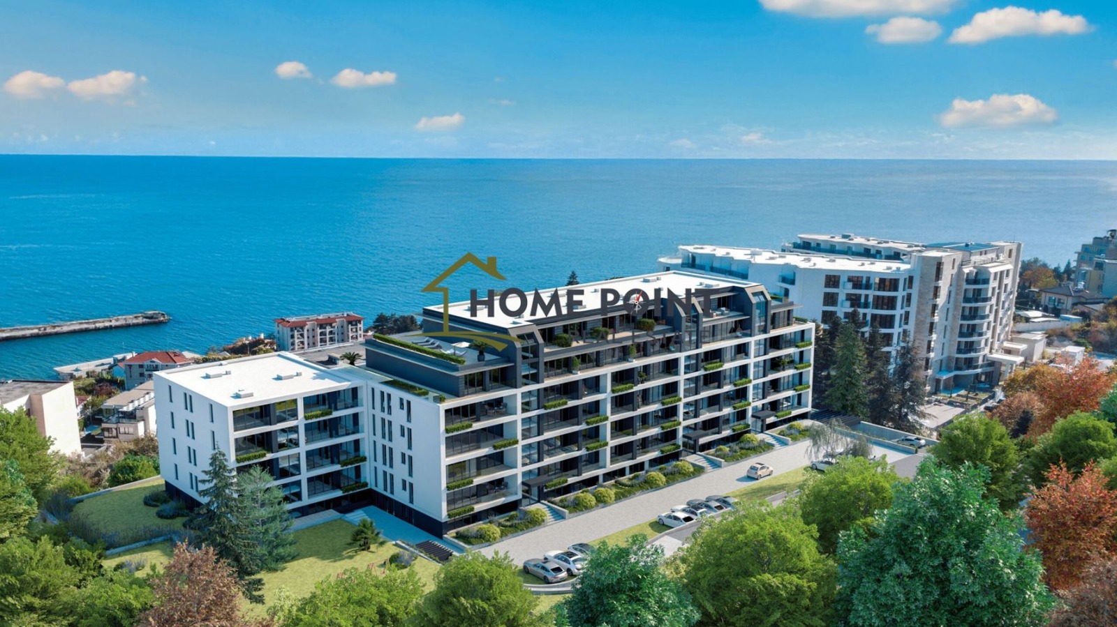 ХОМПОЙНТ предлага Тристаен апартамент БЕЗ КОМИСИОННА от купувача, с Нескриваема Морска Панорама още от кота 0 , Чист въздух с аромат на Морски Бриз.. Комплекса разполага с открит Басейн, Зелени пространства и модерна архитектура създаваща приятна и спокойна среда за живот. Плажа е на 200 метра.
