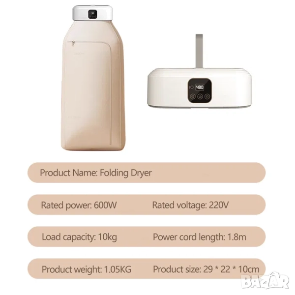 Преносима сушилня за дрехи, 600W, стерилизация с UV светлина