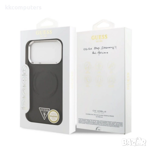 Световно известната модна марка GUESS e икона на стила и изисканата визия. Тя се отличава с модерни дизайни, елегантност и неповторими облекла и аксесоари. Колекцията ни от оригинални калъфи на GUESS е много предпочитана, тъй като има необикновен, но в същото време стилен и елегантен дизайн с богато разнообразие от цветове. Калъфите за телефон са изработени много прецизно от висококачествени материали, гарантирайки безопасността и безупречната визия на устройството. Силиконовите калъфи прилепват плътно по корпуса на телефона, предпазвайки го от счупване или надраскване. Те са много удобни за захващане и позволяват пълен достъп до екрана, както и до всички бутони, входове и изходи на устройството. Калъфите на GUESS са съвместими с моделите: iPhone 17 Pro Max