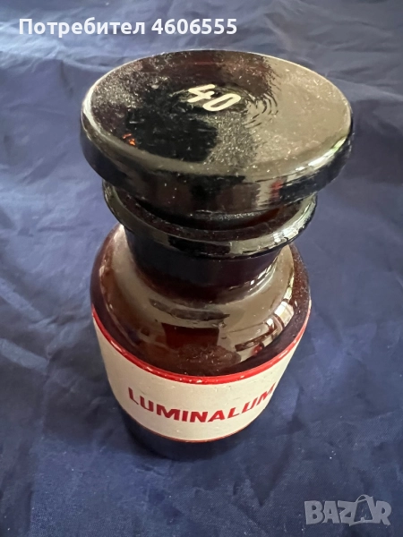 Антична аптекарска бутилка с етикет „LUMINALUM“. → Обява 52210597