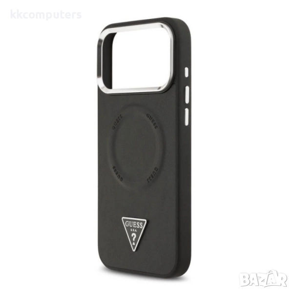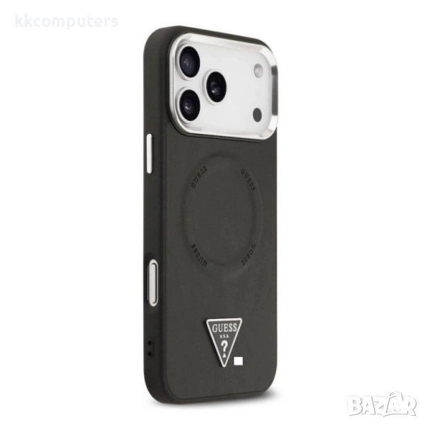 Оригинален кейс Guess Leather Triangle Metal Logo и Протектор За iPhone 17 Pro (6.3), Черен