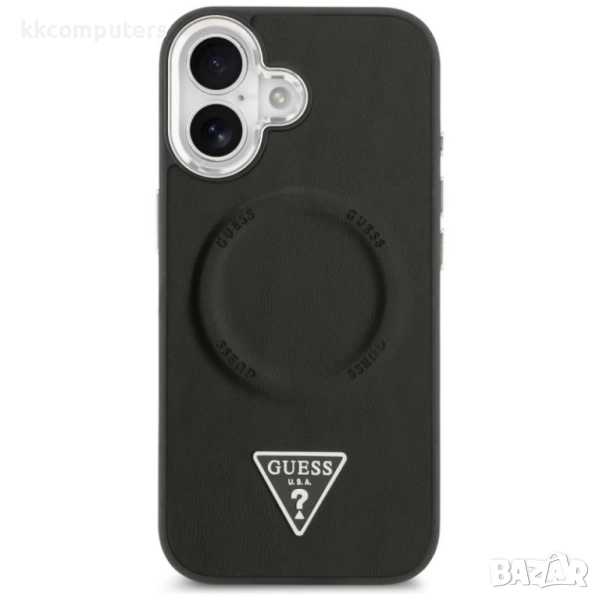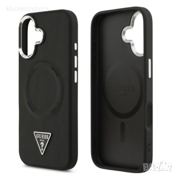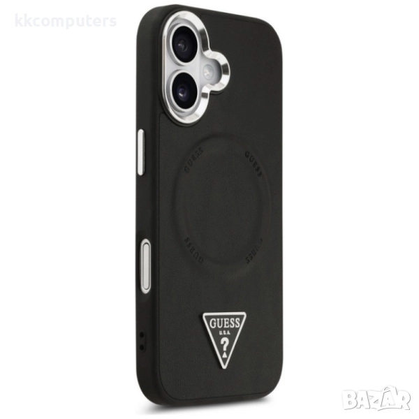 Оригинален кейс Guess Leather Triangle Metal Logo и Протектор За iPhone 17 (6.3), Черен