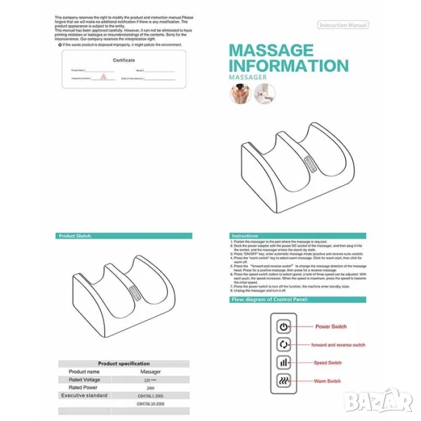 Електрически масажор за крака с нагряване, нагревки, кръвообръщение