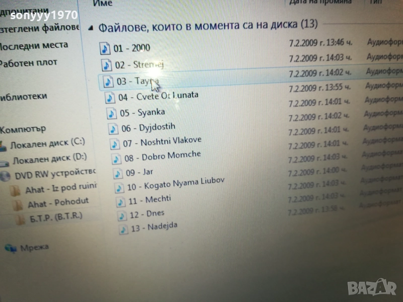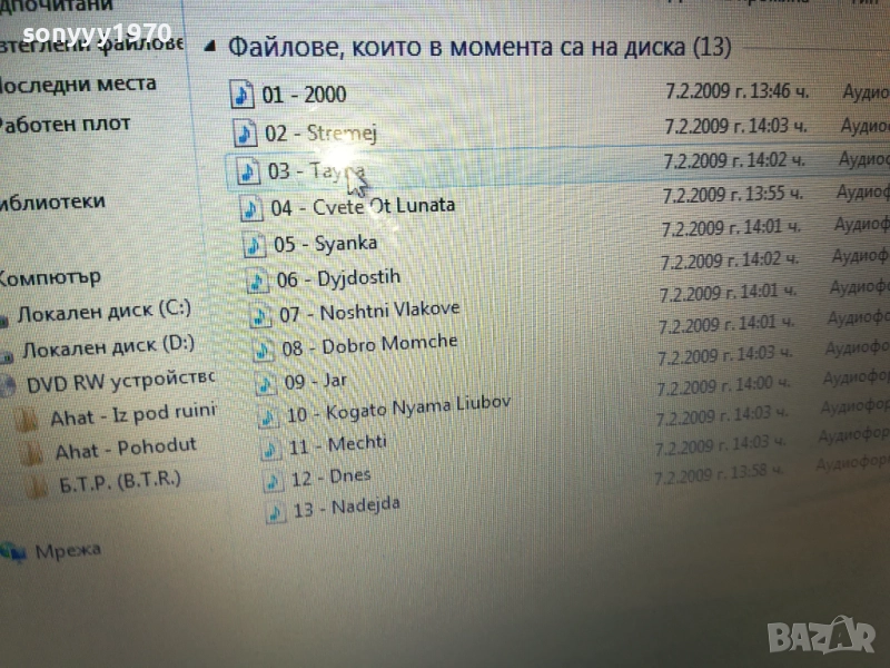 МП3-ПУСКА СЕ И СВИРИ НА ЛАПТОПА,А НА ПЛЕЪРА МИ TECHNICS НЕ ЩЕ-КРАЙНИ ЦЕНИ.ПАЗАРЛЪЦИ НЕ! пращаме само с еконт с преглед и тест след превод на капаро за куриерската услуга поради зачестили некоректни потребители-поръчки само тук в сайта! по телефона и със смс не! крайни цени! бартери не правиме! ПАРИ НЕ ВРЪЩАМЕ! всеки ден нови неща-още 2-3 наши обяви тук