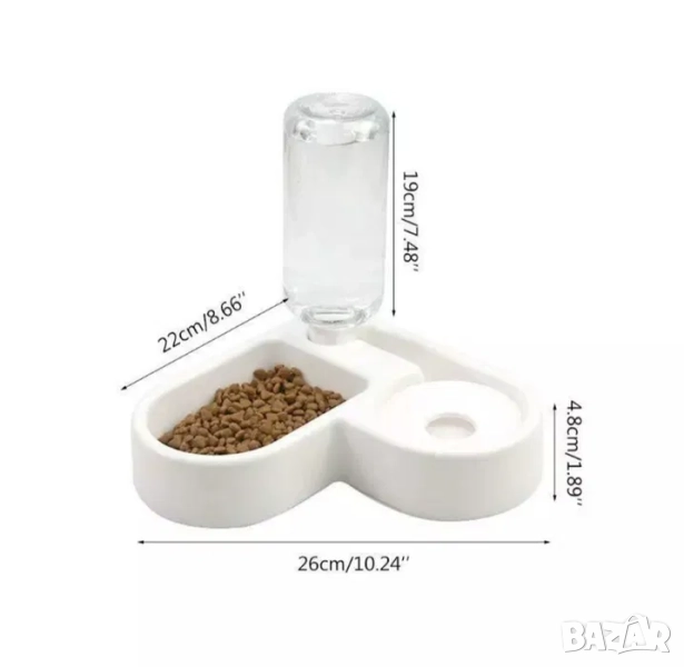 Двойна купа за домашен любимец, една купа за храна, а другата за вода. Лесно е да заредите водата на вашия домашен любимец, без да премествате цялото устройство.