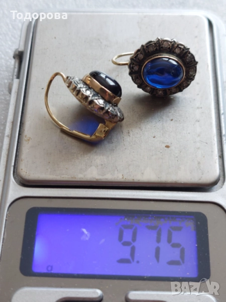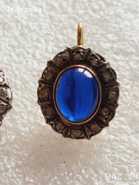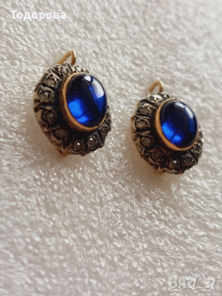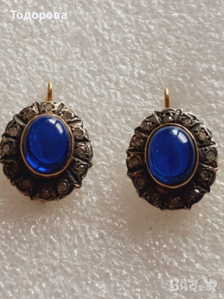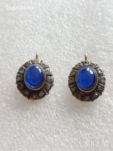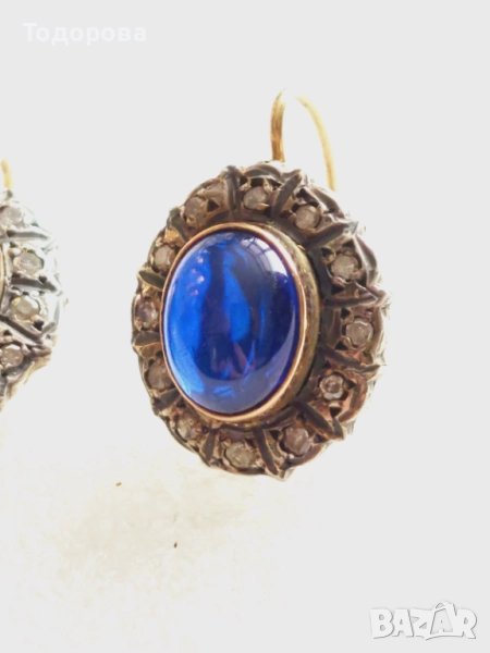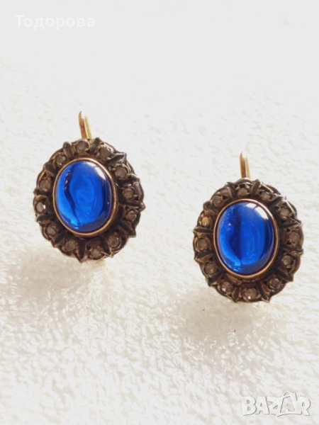 Стари антикварни златни обеци със сапфири и диаманти, злато 14к., 2 260 лв → Обява 52211596