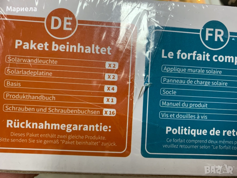 Комплекта се състои от 2 прожектора с 2 соларни батерии !
