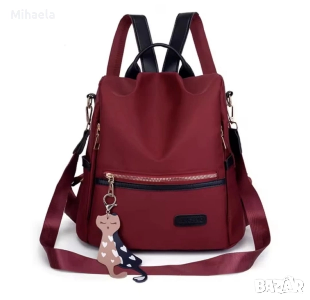 ✨ Стилна и практична дамска раница в красив бордо цвят. Изработена от водоустойчива материя с висококачествени ципове и регулируеми дръжки.