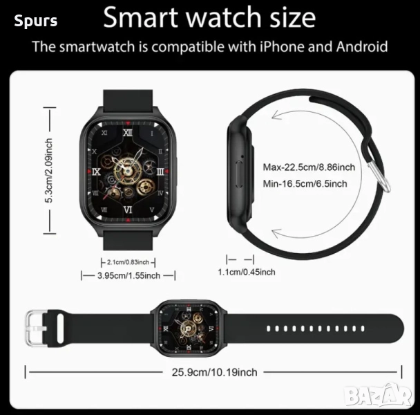 2.01-Инчов Смарт часовник за iPhone и Android → Обява 52211946