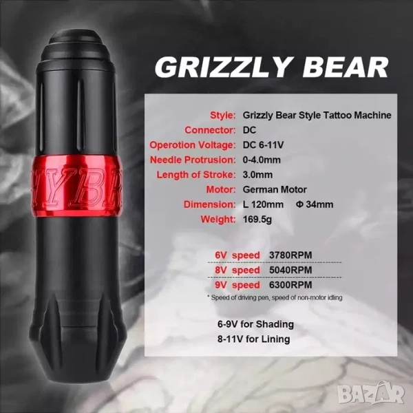 С професионална ротари машинка с мощен НЕМСКИ мотор Grizzly Bear - Stigma Hybrid