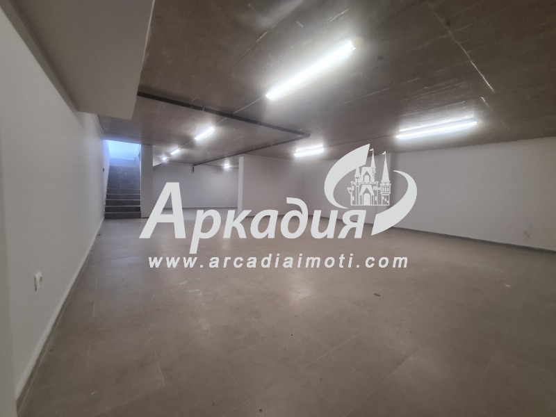ОФЕРТА- 23985- Предлагаме Ви помещение 190кв.м под наем в новопостроена малка луксозна сграда с АКТ-16 от 2022г. Кооперацията е разположена на главен булевард с достъп и от странична улица, което прави възможно товаро-разтоварна дейност с големи камиони, без това да блокира трафика. Помещението е със статут на магазин, видимо и удобно за различен вид дейности. Фасадата е с гранит, алуминиеви витрини и изводи за светлинна реклама. Състои се от едно голямо помещение със санитарен възел с WC на първо ниво с площ от 110кв.м и складово помещение в сутеренната част с площ от 80кв.м. Височина на таваните 3,20м. Предлага се завършен с подова настилка висококачествен гранитогрес, мазилка на стените, напълно оборудвано мокро помещение.