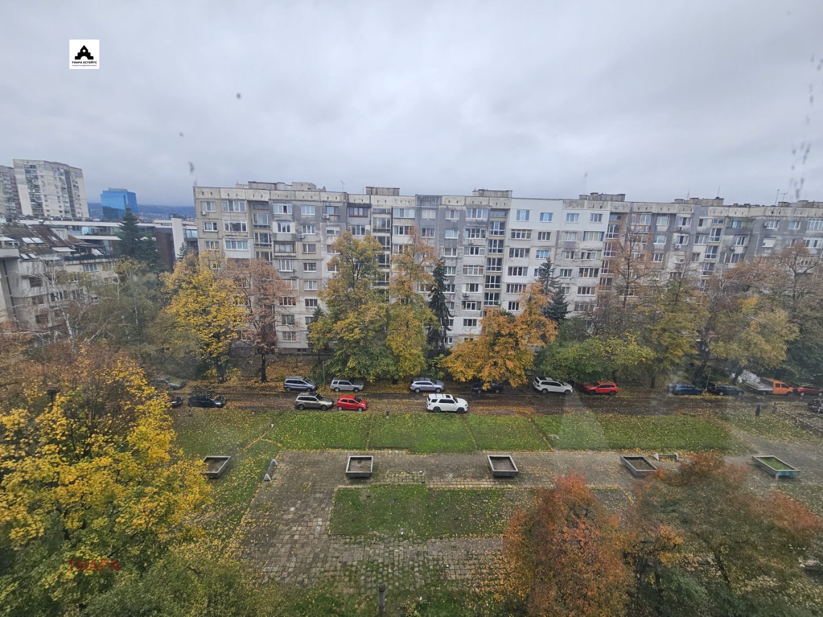 Предлагаме за продажба панелен двустаен апартамент с застроена площ от 61 кв.м. и мазе 4 кв.м., разположен на 7-ми етаж от 8 в добре поддържана жилищна сграда с отлични общи части.