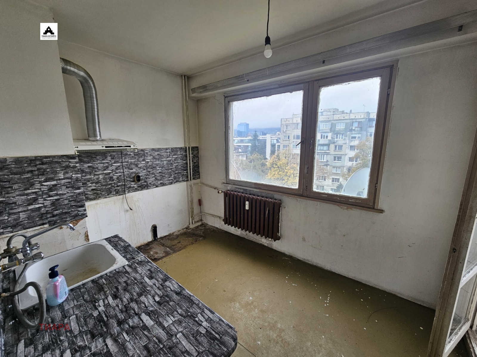 Апартаментът е с изложение ЮГ, светъл и топъл, с потенциал за модерно обновяване. Състоянието е за ремонт, което позволява преустройство и индивидуален интериорен проект.