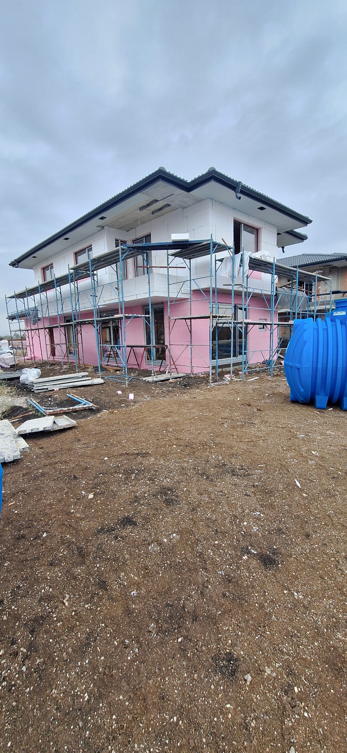 Фасада предвидената топлоизолация по външните зидове от най-висококачествен EPS с дебелина от 20 см. Избрали сме висококачествена силиконова самопочистваща се мазилка на марката BAUMIT