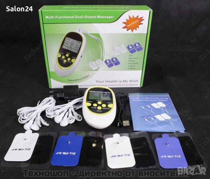 Електроимпулсен масажор с 8 самозалепващи пада за електростимулация, снимка 1 - Масажори - 52213617 Електроимпулсен масажор с 8 самозалепващи пада за електростимулация, снимка 2 - Масажори - 52213617 Електроимпулсен масажор с 8 самозалепващи пада за електростимулация, снимка 3 - Масажори - 52213617 Електроимпулсен масажор с 8 самозалепващи пада за електростимулация, снимка 4 - Масажори - 52213617 1/4