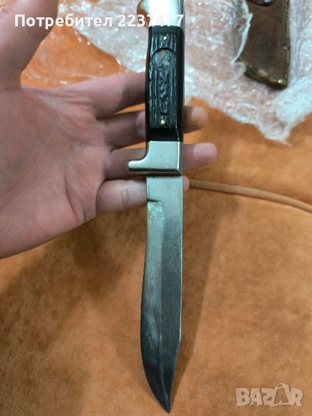 състояние по снимките ,емблемата липсва ,има драскотини по острието ,ползван нож си е