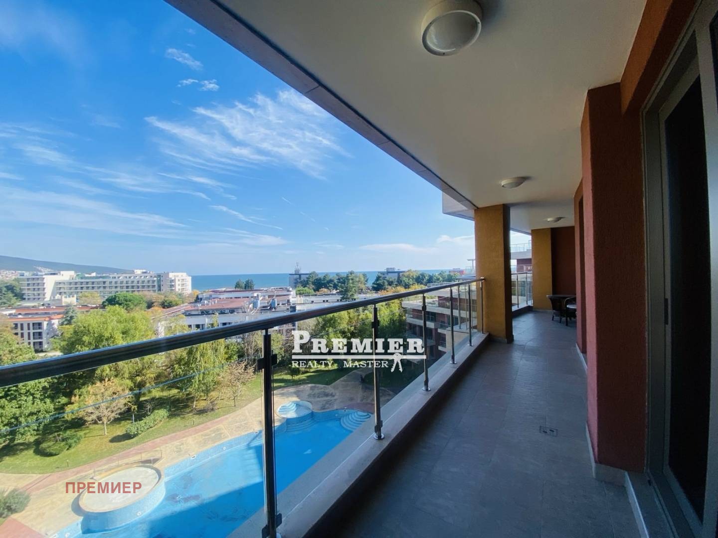 Имотът е с обща площ от 171 кв. м, състои се от три големи стаи /две спални и хол с кухня/, две големи бани, коридор и тераса с гледка море, на която се излиза от трите стаи.