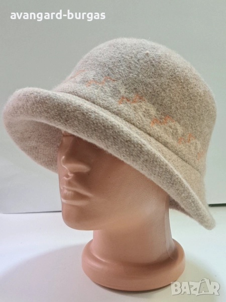 Дамска шапка,вълнен лукс -223 Касторен гонен плат → Обява 52213894