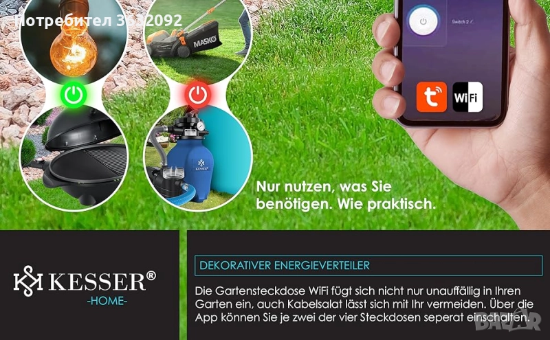 Устройството е подходящо за използване на открито, например в градината или на терасата.