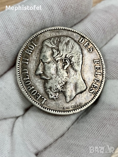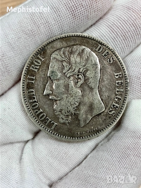 5 франка 1875 г, Кралство Белгия - сребърна монета