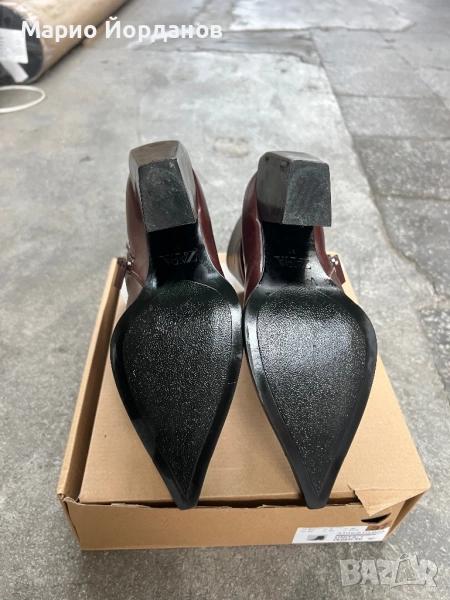 Кожени боти от ZARA с висок ток във виненочервен цвят. Носени са няколко пъти, в отлично състояние, подходящи за стилни и ежедневни тоалети. Оригинална цена 159лв.