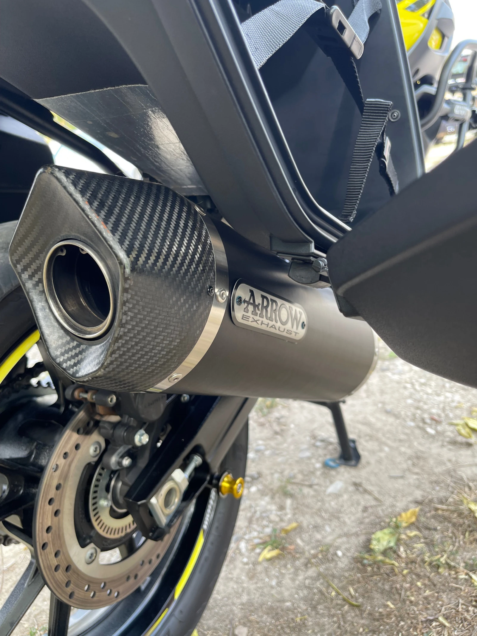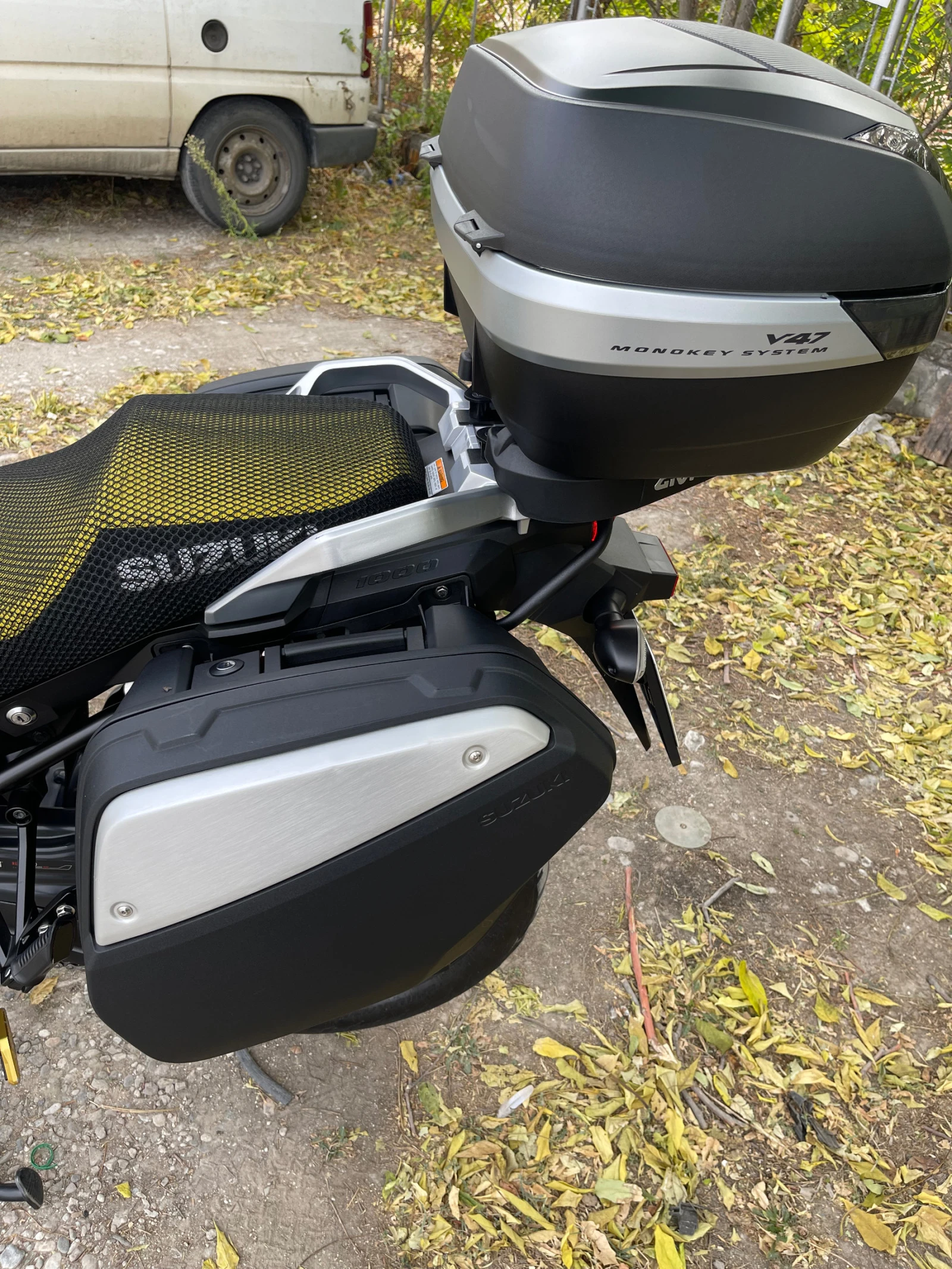 Givi, централна стойка за вдигане, лед халогени, лед крушки - къси и дълги светлини, заден калник с предпазител за веригата Givi, предпазител на радиатора от камъни и насекоми. Има още и три куфара, два от тях, странични и оригинални на Сузуки и среден на Givi 47L, изпускателна система и крайно гърне Arrow (exhaust), като има и заглушител на гърнето. Два ключа, въздушен перящ филтър K&N). Моторът е в топ състояние (като нов). Цената се коментира след оглед и в рамките на разумното.