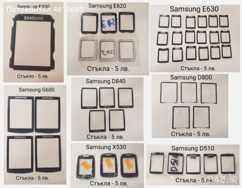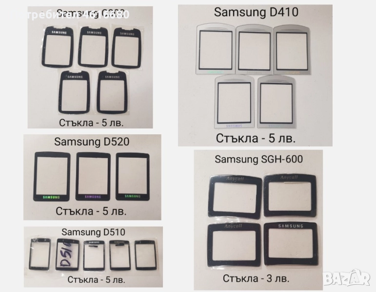 Стъкла 5 лв. за Samsung U600, E370, E760, U800, E250, E530, Z400, M610, L760, D600, D820, E350, E620, E630, G600, D840, D800, X530, D510, C300, D410, D520, D510, E500, SGH-600