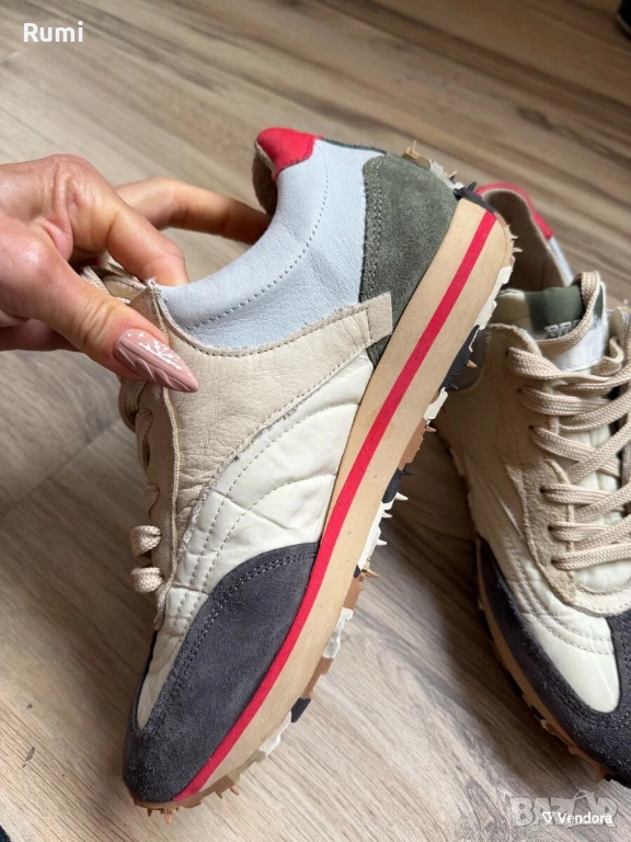 Уникални 100% оригинални маратонки уникален дизайн съвсем нов актуален модел с който няма как да останете незабелязани . На практика нови обивани 3,4 пъти без никакви следи от носене . Уникален модел от естествена кожа идеални както за по официални поводи така и за ежедневието . От встесяена качествена кожа модел лимитирана серия скъпи и уникално шикозни . Като размер са 40 н със ствлка 25 см !