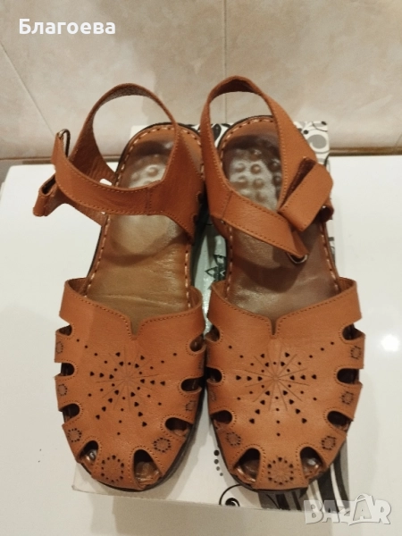 Дамски сандали, кожени, кафяви, обувани 2 пъти, No 37, отговарят на No 38, ЗА ТЕСЕН КРАК, 50 лв