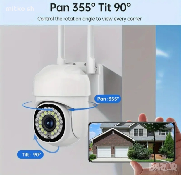 - PTZ панорамен / наклонен (355° хоризонтален и 90° вертикален)