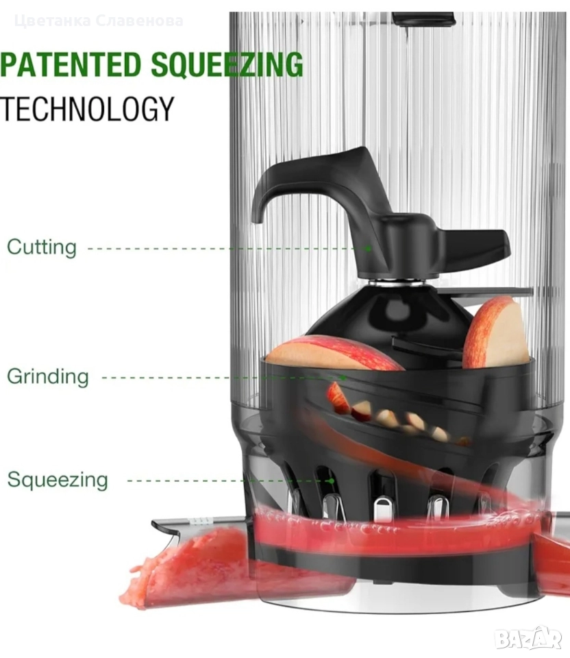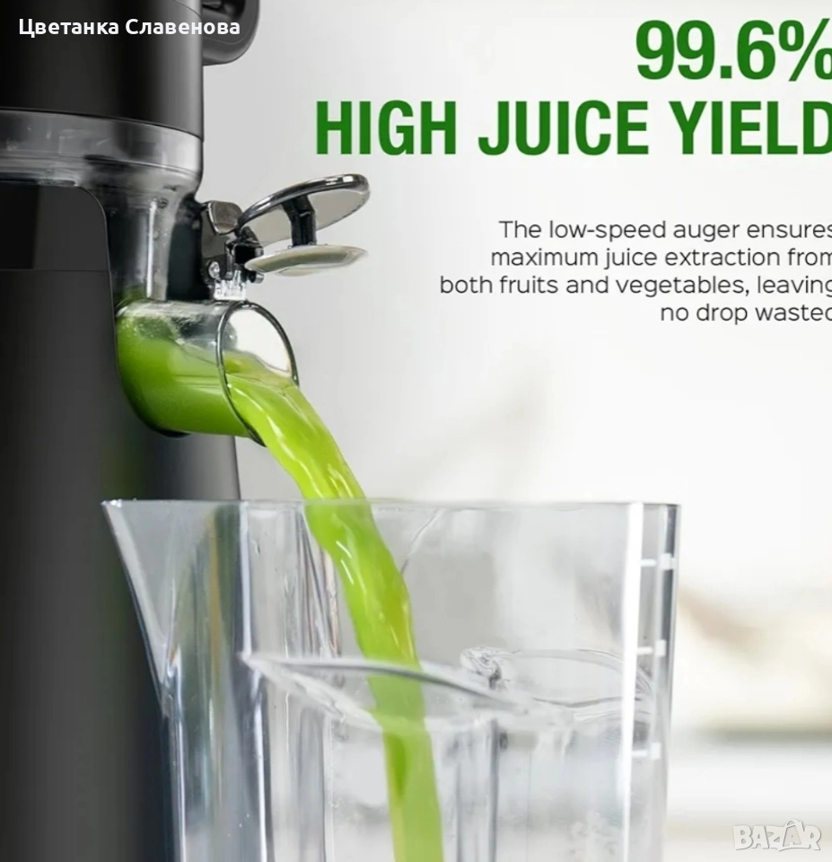 Безопасно и без BPA: Улейът за подаване е проектиран да гарантира вашата безопасност по време на изцеждане. Нашата сокоизстисквачка е изработена от материали без BPA, което гарантира, че сокът ви не съдържа вредни химикали. Насладете се на здравословен и вкусен сок със спокойствие.