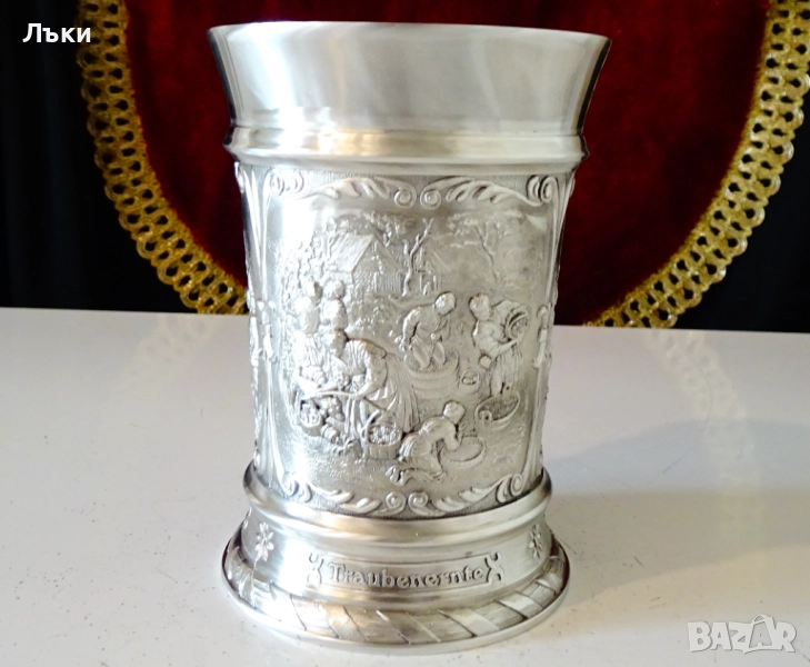Стара немска калаена чаша за вино,халба,майсторска ръчна