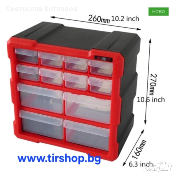 Идеален за съхранение на дребни части – винтове, гайки, болтове, пирони, електронни компоненти, шевни материали, бижута и други